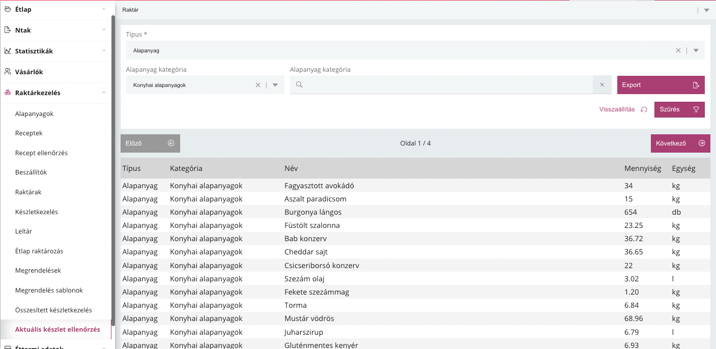 Valós időben lásd, melyik receptedből és alapanyagaidból mennyi van raktáron