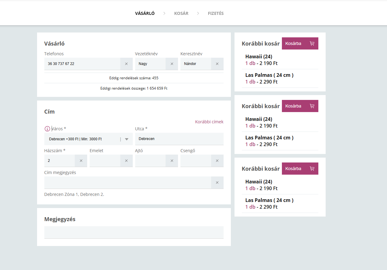 A telefonos rendelés rögzítésekor mostantól megjelennek a vendég korábbi rendelései. Ez lehetővé teszi, hogy egyetlen kattintással újra hozzáadd a korábban leadott rendeléseit, így gyorsabbá és gördülékenyebbé válik a rendelésfelvétel visszatérő vásárlók esetén.