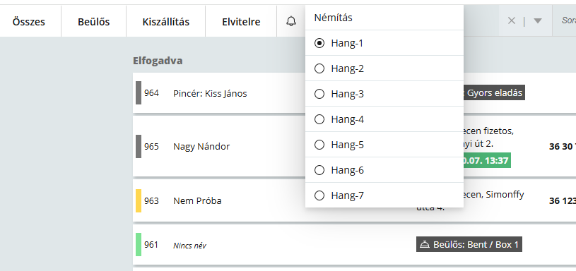 Ezzel a változtatással a rendszer minden esetben jelez, ha új rendelés érkezik, függetlenül attól, melyik nézetben vagy.