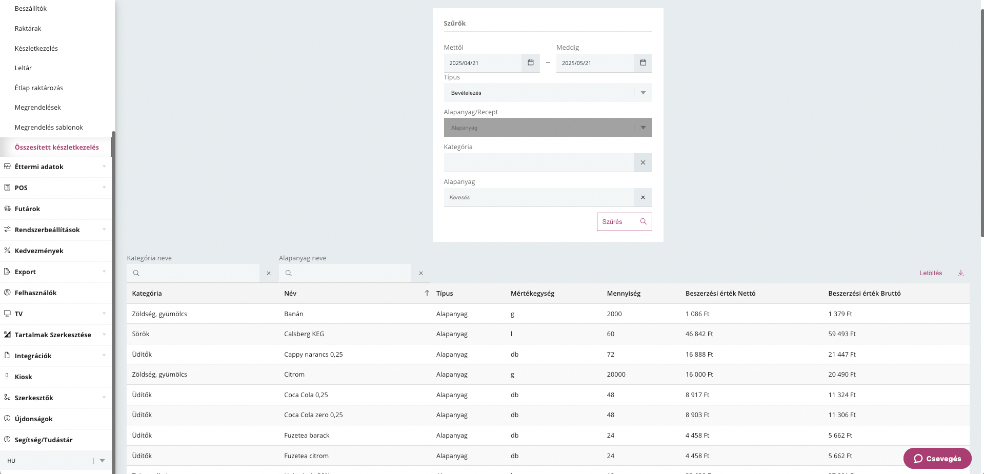 A raktárkezelő modul új funkcióval bővült, amely lehetővé teszi a különböző készletműveletek – például bevételezések, selejtek és átadások – átfogó lekérdezését. A felhasználók mostantól egyesített formában vagy alapanyagonként szűrve is megtekinthetik a készletmozgásokat, így részletesebb és testreszabottabb elemzések készíthetők.