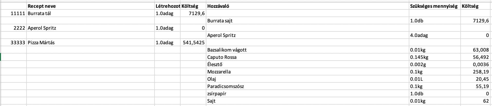 🛠️ Tipp: Az exportált fájlban akár szűrési és keresési funkciókat is használhatsz, hogy gyorsan megtaláld a szükséges receptet vagy alapanyagot.